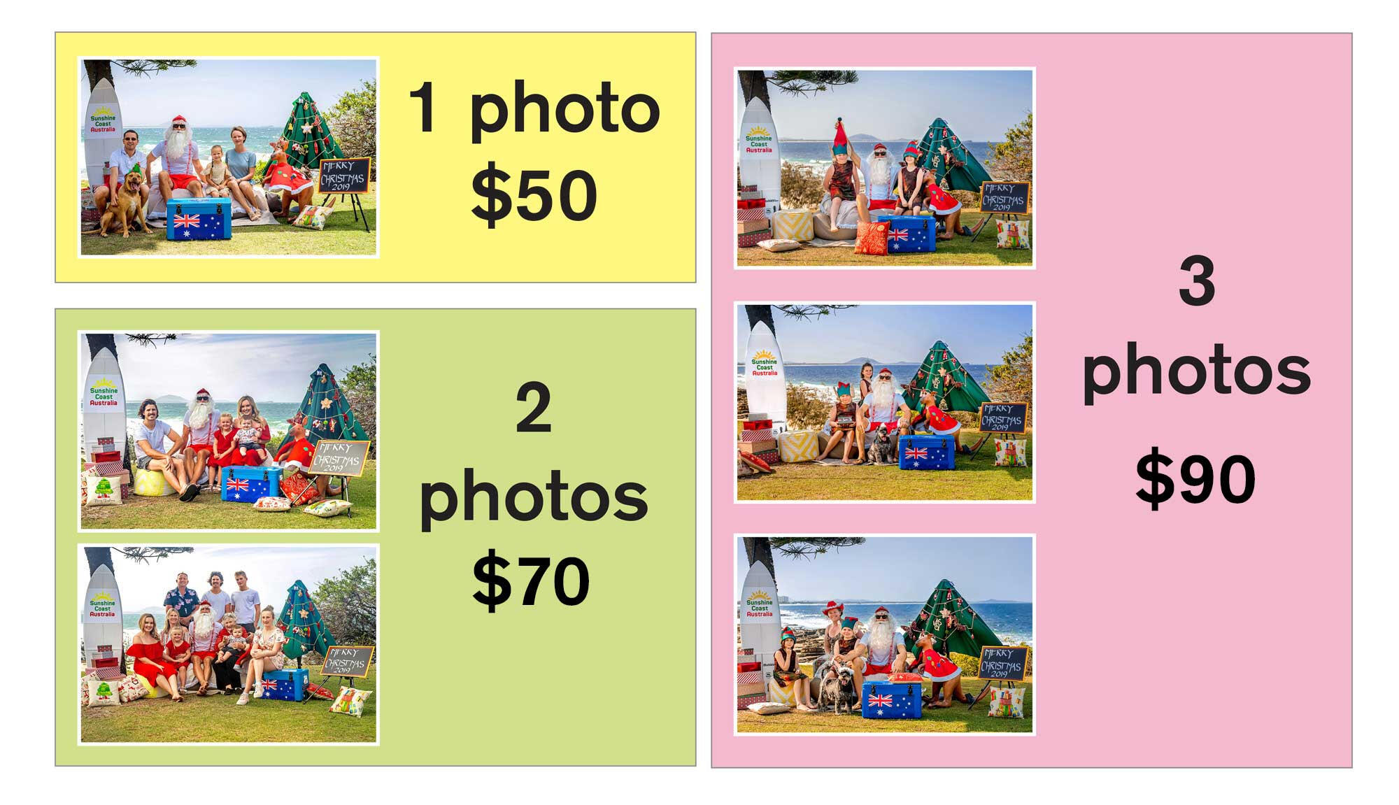 Frequently Asked Questions (FAQ) for Beach Santa Sunshine Coast Photography Serviceβ What is included in the price?β Your session fee includes: